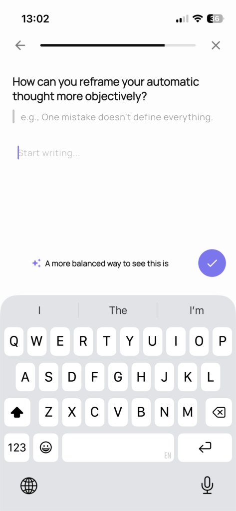 Below is the step-by-step framework we use in our free guided journal in Viven: CBT Guided Journal mobile app to help you navigate these thoughts.
